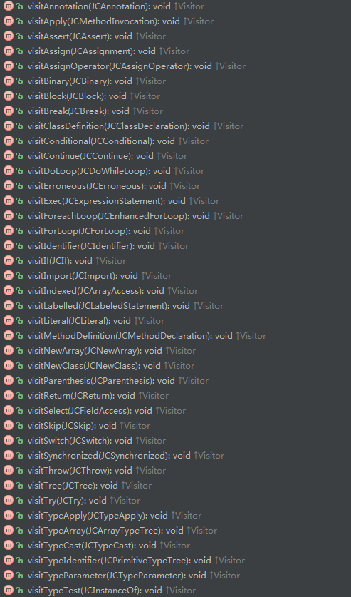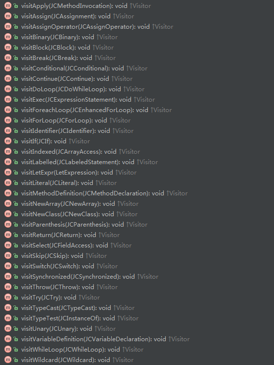 这一篇重点来总结下javac的访问者模式,其定义的访问者接口为JCTree.Visitor,具体如下: