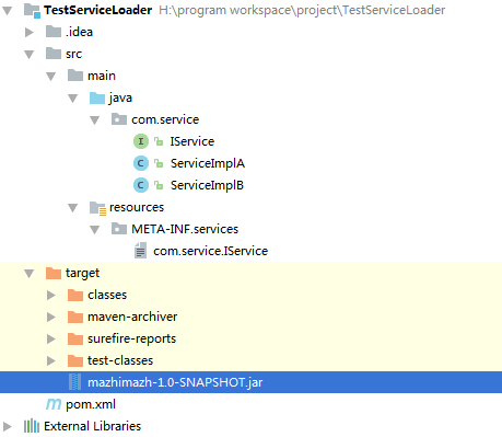 其中的mazhimazh-1.0-SNAPSHOT.jar是打包后的jar。然后放到Java项目的classpath中。