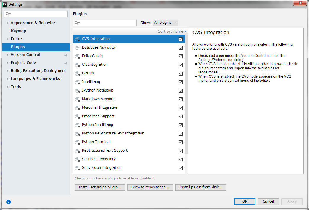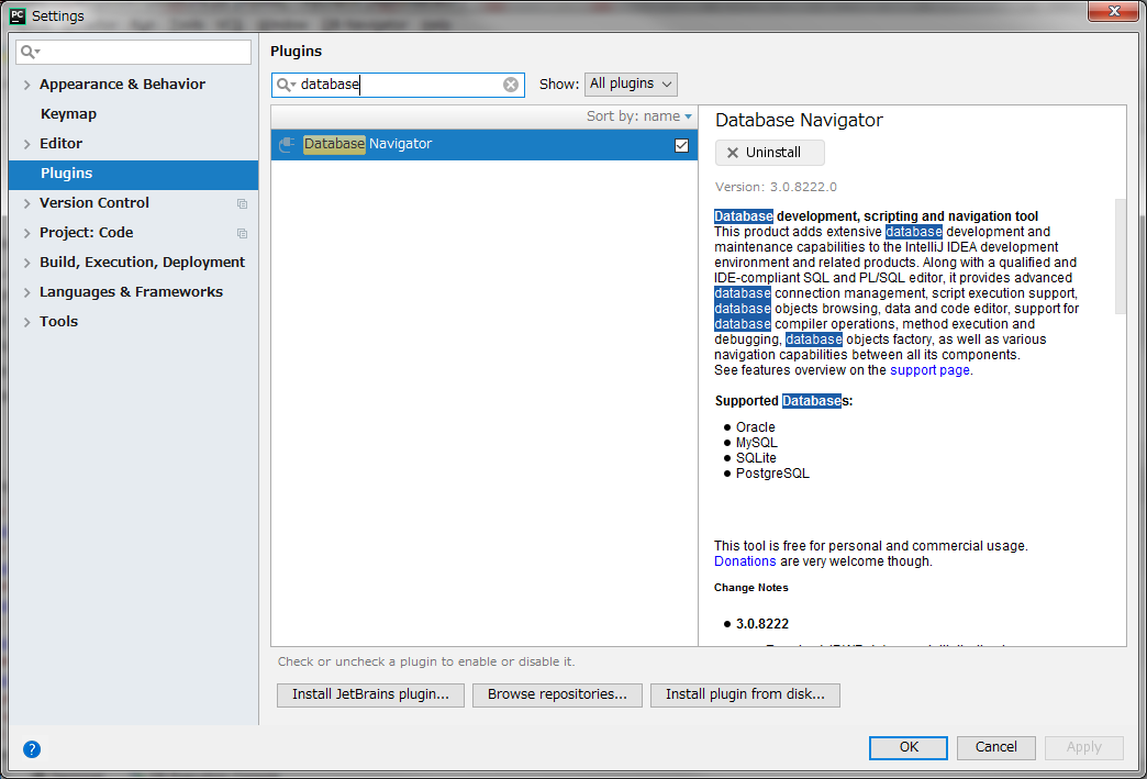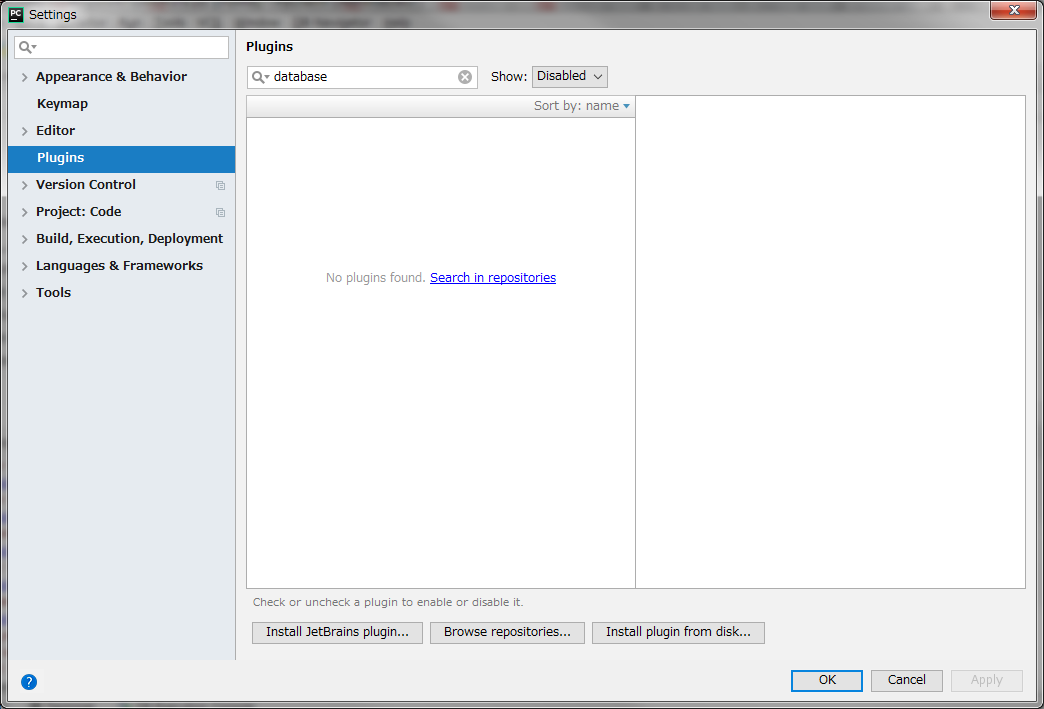 点击setting之后出现的画面上面选择Plugins,之后再检索处输入database