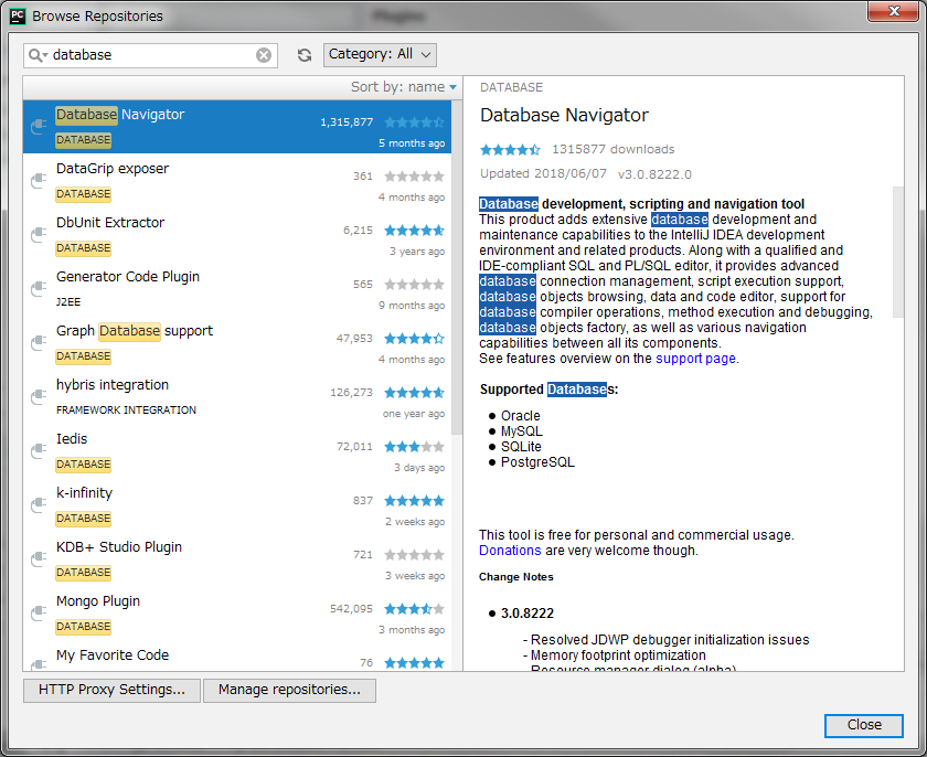 点击上面的超链接之后会出现下面的画面,之后选择database Navigator之后安装即可。