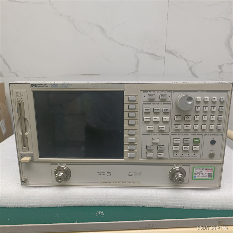 HP8720D网络分析仪包括一个快速扫频源、S参数测试装置、调谐接收机和大的彩色显示。