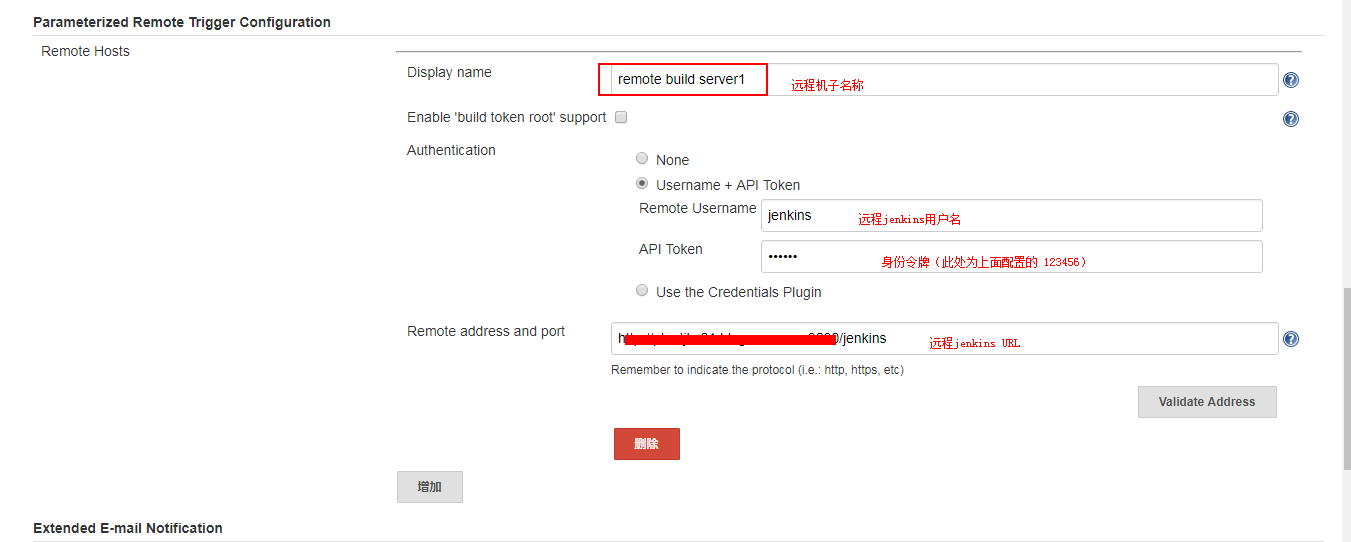 5、本地jenkins 系统配置:添加一个Parameterized Remote Trigger Configuration