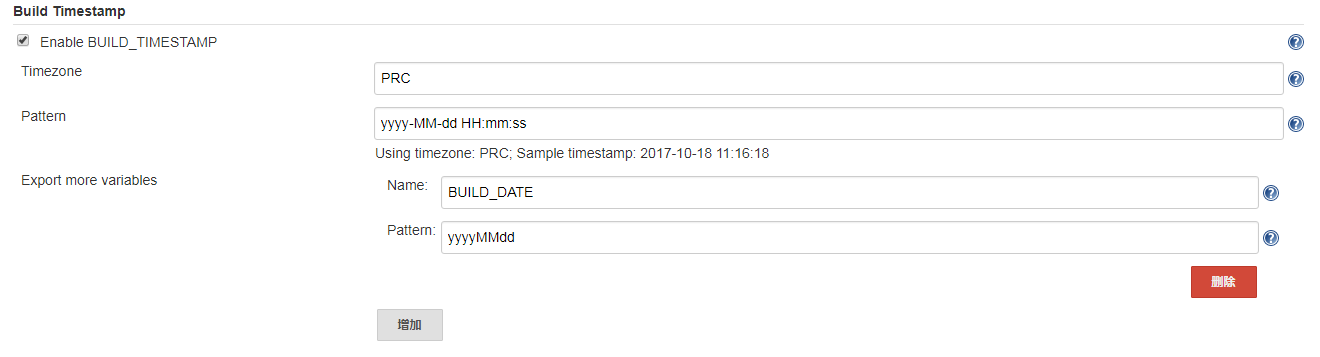 在构建的时候也许我们还会常常用到job的构建时间这个参数,所以,在系统配置里,可以增加构建时间,这样用到的地方$BUILD_DATE就可以引用了