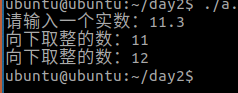 printf("向下取整的数:%d\n向下取整的数:%d\n",(int)n,(int)n+1);