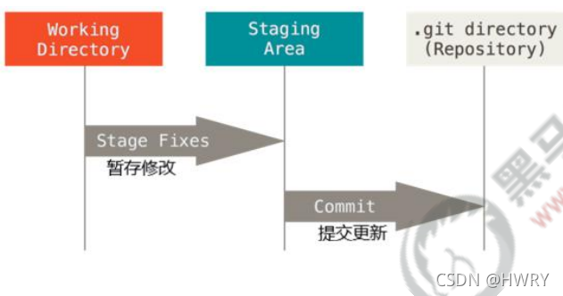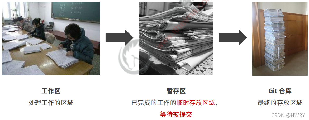 使用 Git 管理的项目,拥有三个区域,分别是工作区、暂存区、Git 仓库