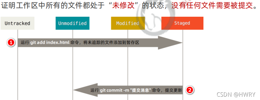 Git 操作的终极结果:让工作区中的文件都处于“未修改”的状态。