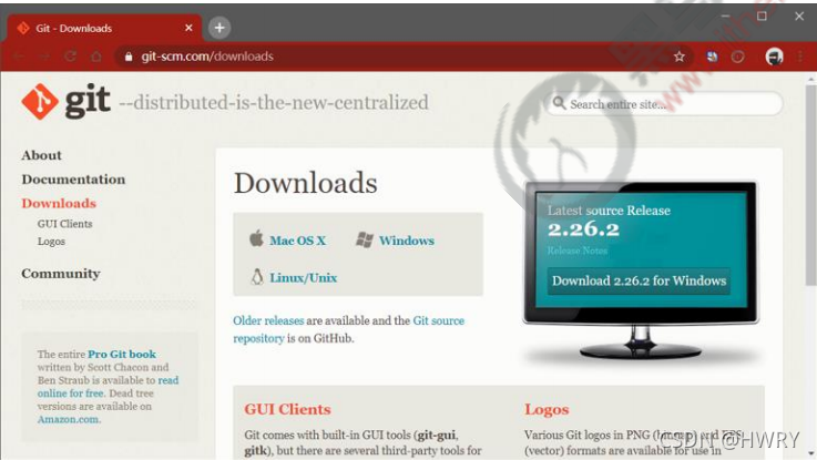 在开始使用 Git 管理项目的版本之前,需要将它安装到计算机上。可以使用浏览器访问如下的网址,根据自己