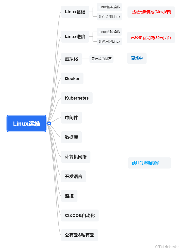 作者介绍:简历上没有一个精通的运维工程师。希望大家多多关注作者,下面的思维导图也是预计更新的内容和当前进度(不定时更新)。
