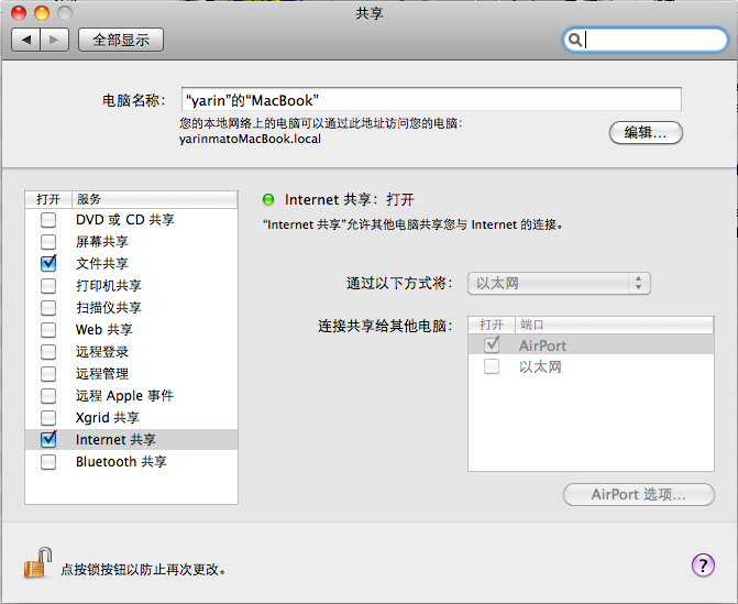 目前使用的是一个苹果笔记本,想让手机能够通过wifi上网,暂时没有使用无线路由器,因此准备把自己的macbook作为路由器来共手机连接网络。同时因为在网上看到很多人问这样的问题,这里就写一下吧。