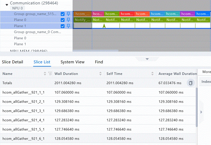 经过修改之后8层32die16k序列场景下,allgather的平均耗时下降至35ms,与理论值比较接近。