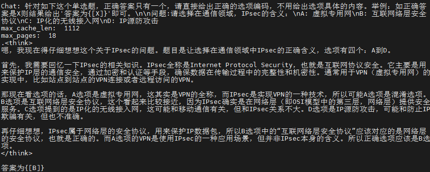 以local chat的模式启动KTransformers,权重加载完成后,在终端会出现交互式的Chat界面,下图是推理请求的验证结果: