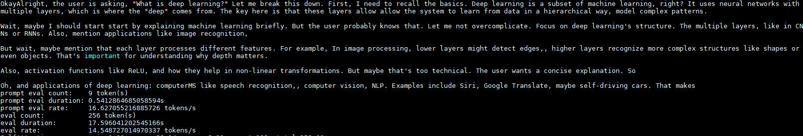 通过上述各项推理性能优化手段,在256输入和256输出,单并发的情况下,推理吞吐量优化到14.5 tokens/s,如下图所示: