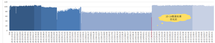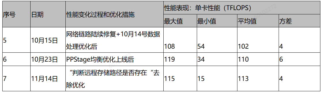 上图是数据处理优化上线后,性能对比图。从图中可以看到,通过数据处理优化后,集群性能从60+TFLOPs回升到了100+TFLOPs,已经达到性能下降前水平。