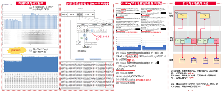c) 根因3:各卡CPU侧进程其他远程存储访问,比如判断远程存储CKPT路径是否存在等会导致各卡耗时差异大,导致性能下降或抖动;解决方法:优化不必要的路径判断,路径访问等操作,尽量减少对远程存储的读写访问;