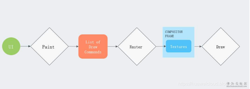 大致的流程就是说Paint环节会生成一个列表,列表里登记了页面元素的绘制指令,接着这个列表需要经过Raster光栅化处理,并在合成帧中处理纹理,最后的Draw环节才是将这些纹理图展示在浏览器内容区。