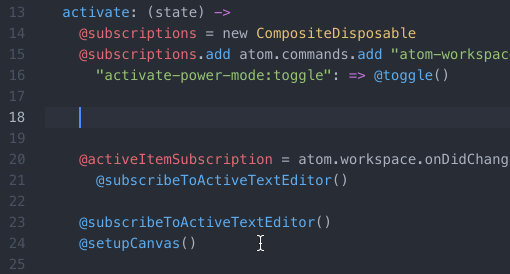 在说activate-power-mode插件之前,让我们现在介绍下另外一款编辑器:Atom,它是github专门为程序员推出的一个跨平台文本编辑器,具有简洁和直观的图形用户界面,并有很多有趣的特点:支持CSS,HTML,JavaScript等网页编程语言。说到这里大家以为我要介绍这款编辑器吗?NoNoNo,之所以提到它,是因为Atom编辑器有一个炫酷的特效activate-power-mode,像下面这样: