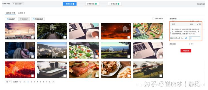 好,标注完了我们就可以开始训练了。我们在这里不需要写任何的代码,因为平台已经给我们写好了,内置了目标检测的深度学习模型,我们只需要提供数据训练就行了,如图所示: