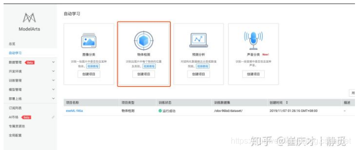 在这里我们就切换到「自动学习」的选项卡,创建一个物体检测的项目。