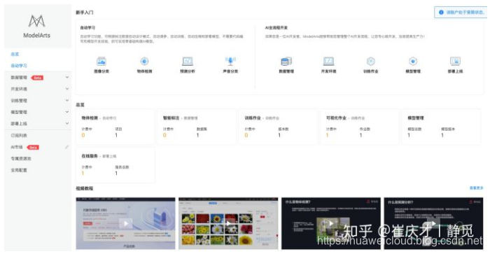 在这里就要请出今天的主角—— ModelArts 了,这是我发现的华为云的一个深度学习平台,借助它我们可以完成数据标注、模型训练、模型部署三个步骤,最重要的是,我们不需要写代码,只需要点来点去就可以完成了。
