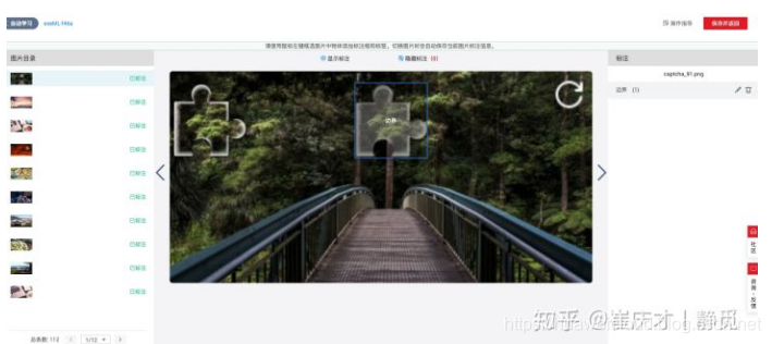 在这里边界需要把整个缺口的图全框选出来,其中上边界和右边界和标注框相切即可,总之确保标注框正好把缺口图框选出来就行,平台会自动保存和记录标注的像素点位置。