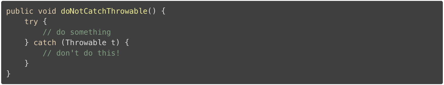 6、不要捕获 Throwable 类