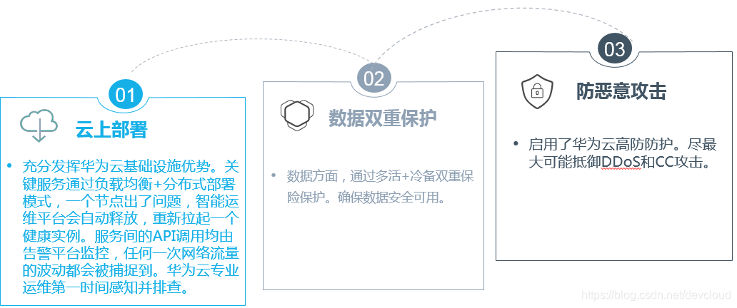 数据方面,通过多活+冷备双重保险保护,确保数据安全可用。同时,启用华为云高防防护,尽最大可能抵御DDoS和CC攻击。