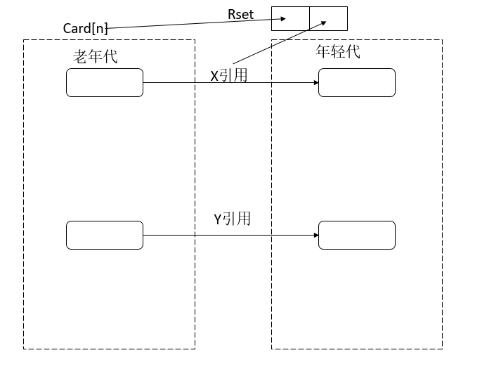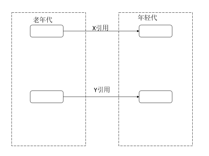如上图,X引用和Y引用都是属于跨代引用。