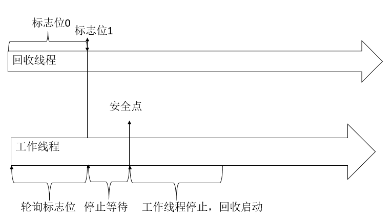 - 业务线程执行过程中,会不断轮询一个标志位,该标志位处于垃圾回收线程中;