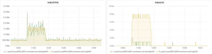 这时,从后台可以看到,在投递作业期间,大量并发容器同时运行时,云硬盘的写入带宽被大量占用: