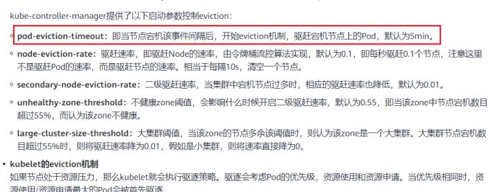 这里我们假设每个容器的正常运行时间为1~2个小时,那么不应该一发生驱动就马上杀死容器(因为已经执行到一半的容器,杀掉重新执行是有成本浪费的)。我们期望应该尽量等待所有容器都运行结束才动手。所以这个 pod-eviction-timeout 容忍时间,应该设置为24小时(大于每个容器的平均执行时间)。