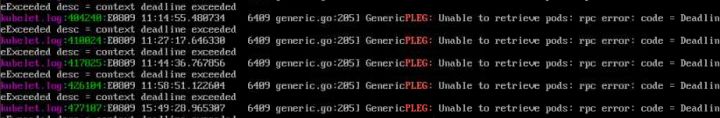 于是搜索PLEG相关的Kubelet日志,发现该错误还挺多: