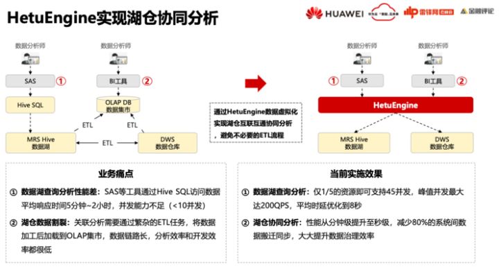 第二个,引入HetuEngine,实现数据湖内的数据免搬迁的查询分析。避免一些不必要的ETL过程。