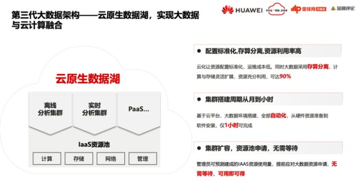 再次,在申请集群扩容资源弹性时,无需准备,可以很快的在大资源池进行统一调配。一般而言,云上只要预留了资源,空间资源可以很快加入到大数据的资源池里,新业务上线也会变得非常敏捷。
