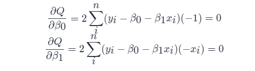 现在需要确定β0、β1,使cost function最小。大家很容易想到,对该函数求导即可找到最小值: