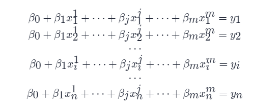 y(x1,⋯,xm;β0,⋯,βm)=β0+β1x1+⋯+βmxm