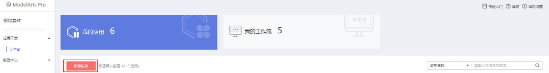 您也可以单击“我的工作流”,切换至“我的工作流”页签,选择工作流并单击卡片中的“新建应用”。