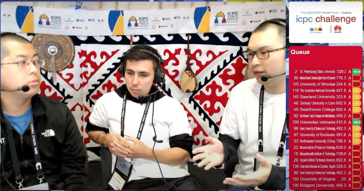 在比赛的后半程中,选手们的分数咬得非常紧,排行榜上更是出现了很长时间的三队并列。在离比赛结束还有一分钟时,莫斯科物理技术学院大幅刷新了自己的得分,直接冲上排行榜第二名,而麻省理工学院则凭借在比赛结束前15秒的一发提交从二十名开外来到了榜眼的位置,将刚完成“绝杀”的莫斯科物理技术学院超越。 经过激烈的角逐,东京大学、麻省理工学院(MIT)、莫斯科物理技术学院、圣彼得堡国立大学荣获赛事一等奖;东京工业大学、北京大学、白俄罗斯国立大学、香港中文大学(深圳)荣获赛事二等奖;京都大学、浦项科技大学、北京交通大学、蔚山科学技术院则荣获赛事三等奖。