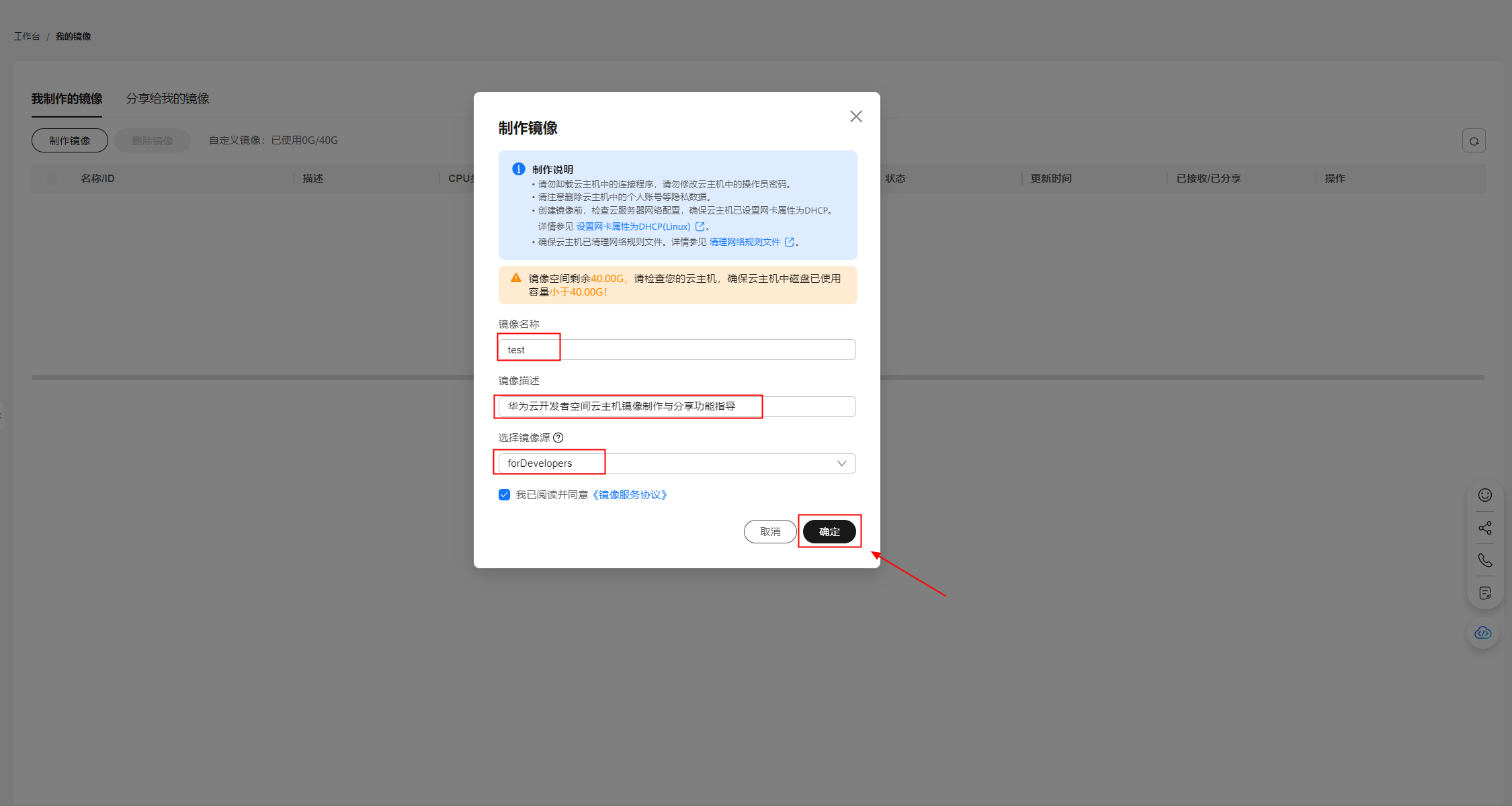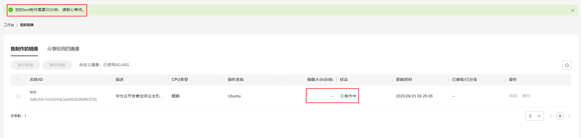 镜像描述:华为云开发者空间云主机镜像制作与分享功能指导