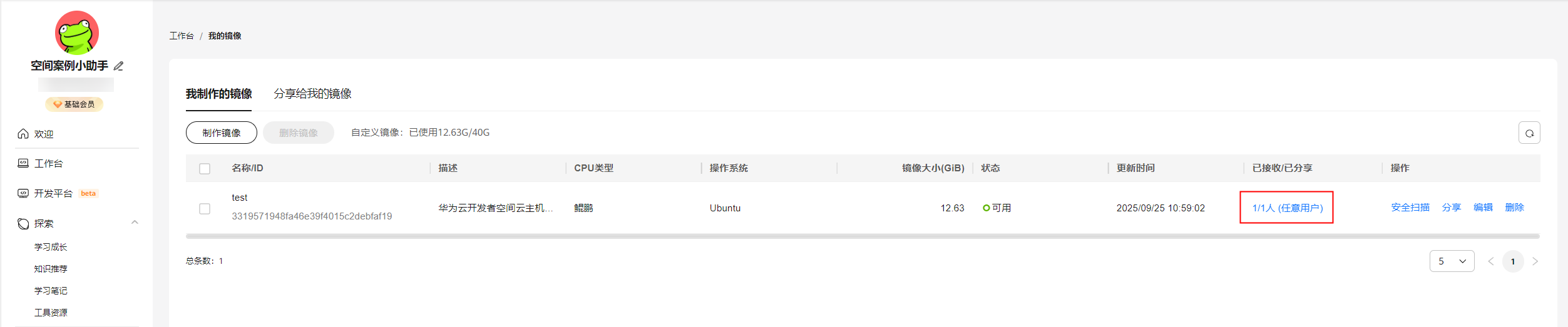 华为开发者空间为广大开发者准备了一个40G的存储空间,用于储存开发者制作的镜像。