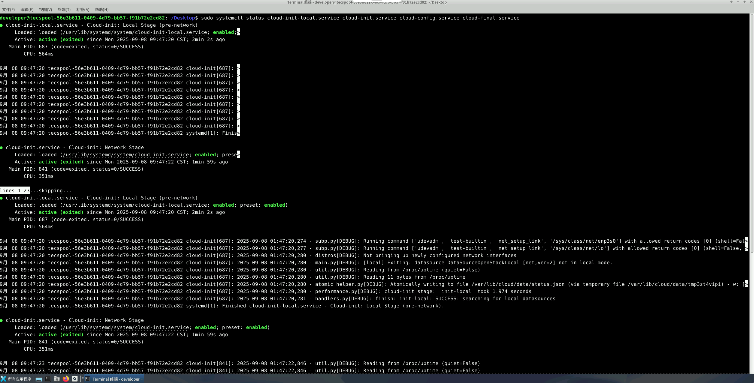 参考官方操作手册《安装cloud-init》更新安装cloud-init。并验证其处于active (exited)状态。
