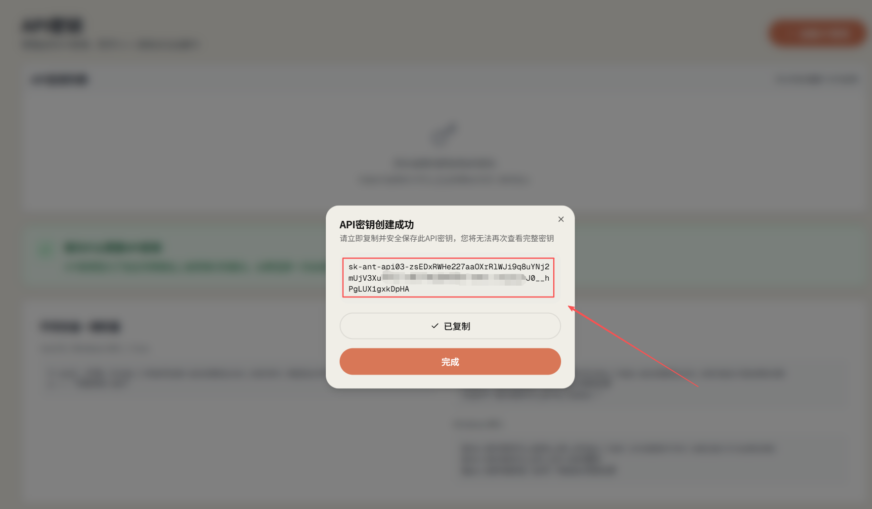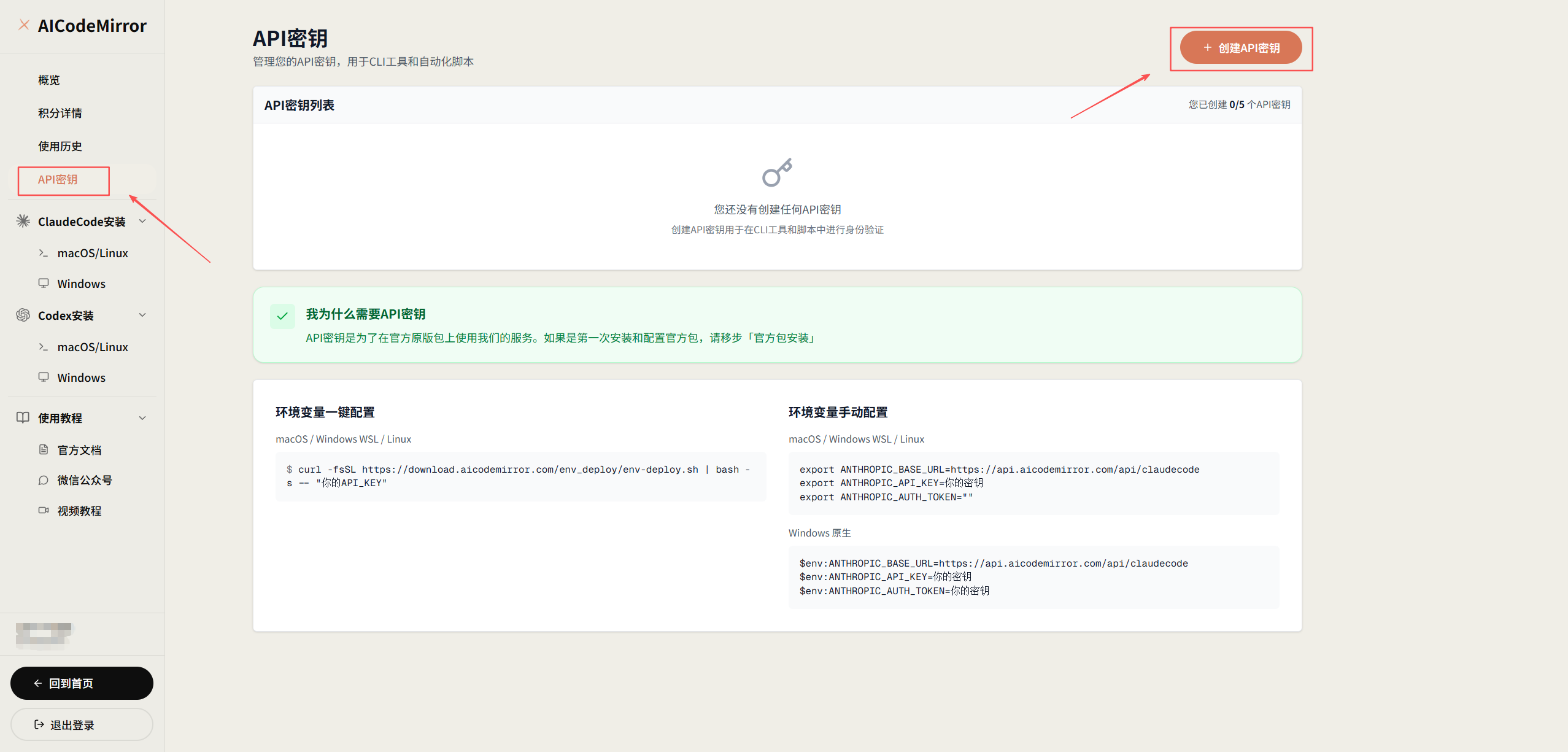 - 注册并登录Claude Code官网,获取Claude Code安装API密钥;