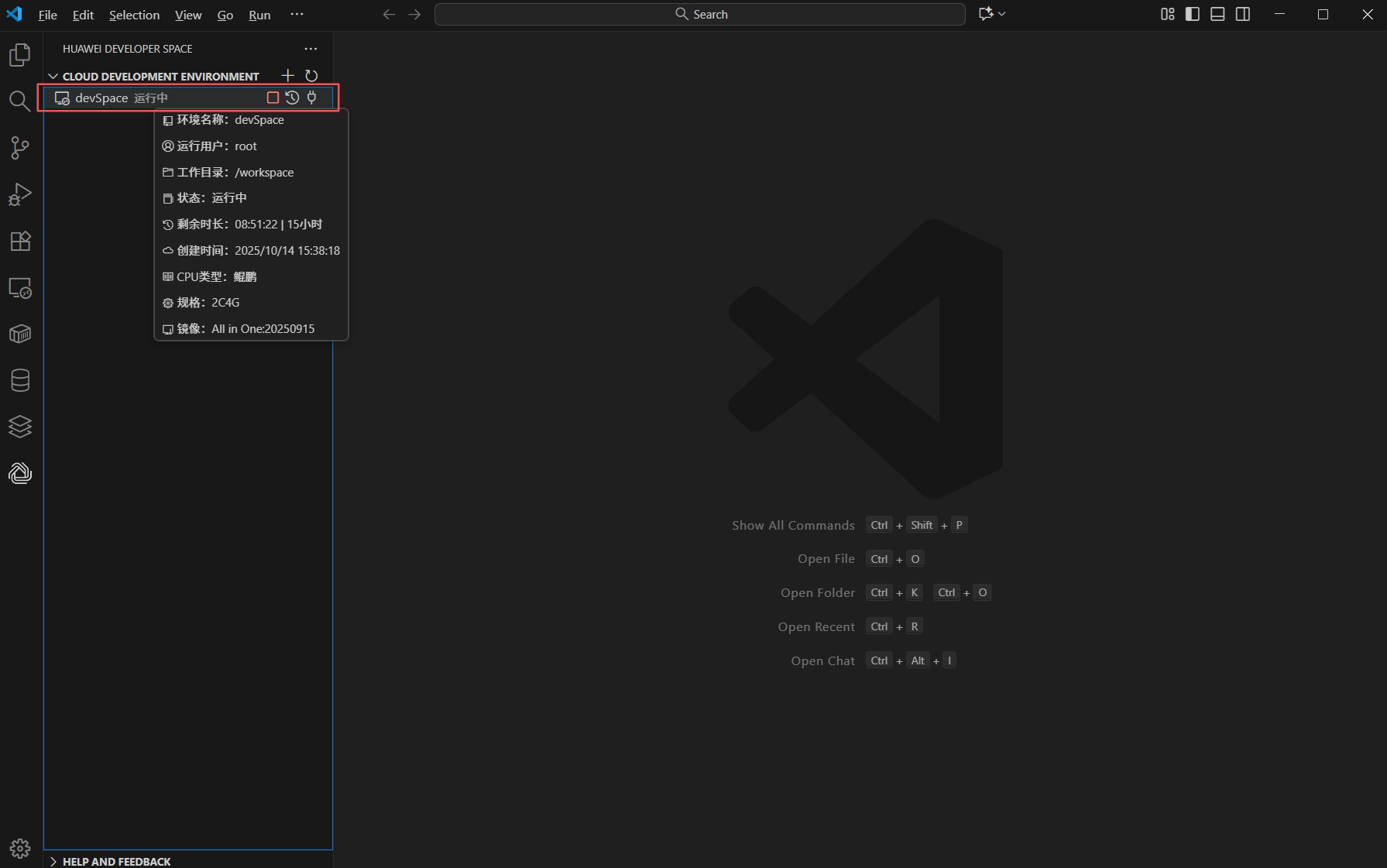 - PC本地通过VS Code安装Huawei Developer Space插件,远程连接操作云开发环境(容器)的;