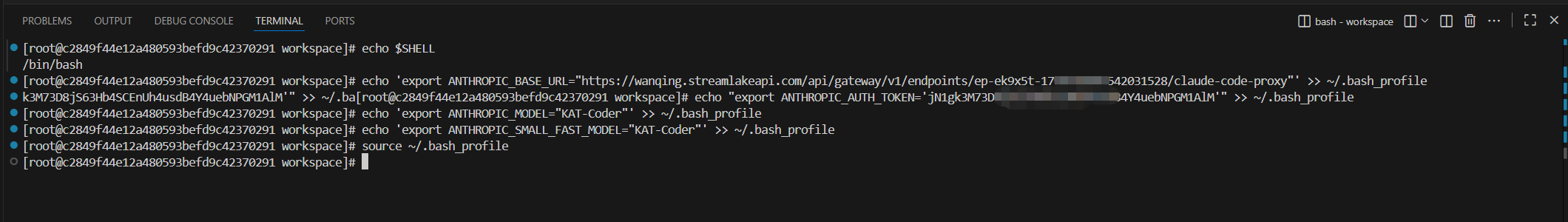 echo 'export ANTHROPIC_BASE_URL="https://wanqing.streamlakeapi.com/api/gateway/v1/endpoints/ep-xxx-xxx/claude-code-proxy"' >> ~/.bash_profile