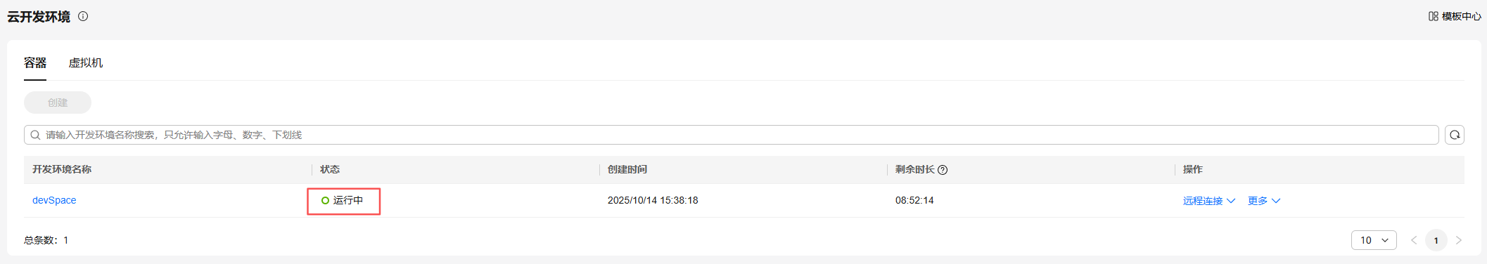 - 注册登录华为开发者空间,进入云开发环境(容器)平台,web端实现容器的创建与开机操作;