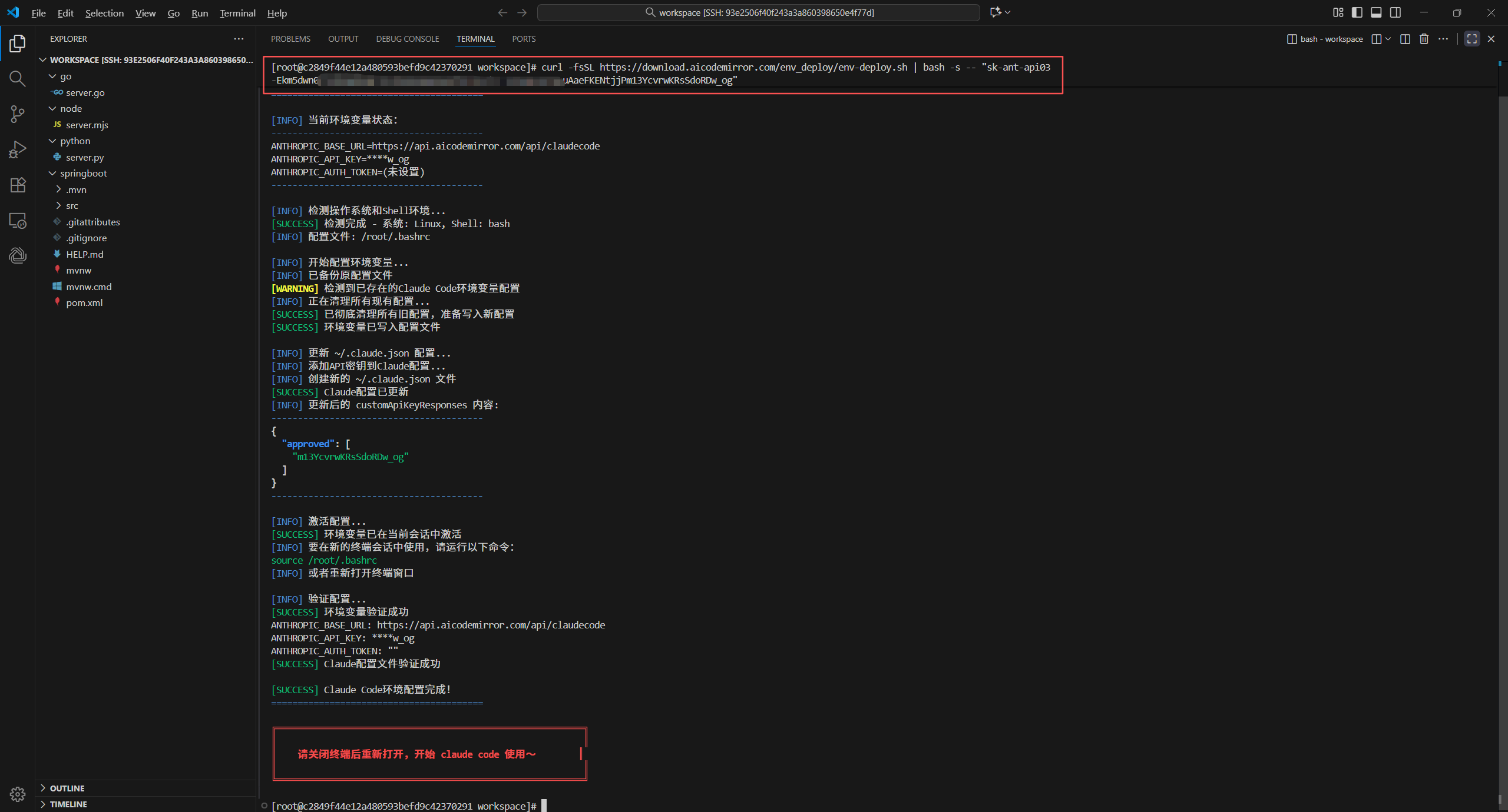 curl -fsSL https://download.aicodemirror.com/env_deploy/env-deploy.sh | bash -s -- "sk-ant-apixxxxx"