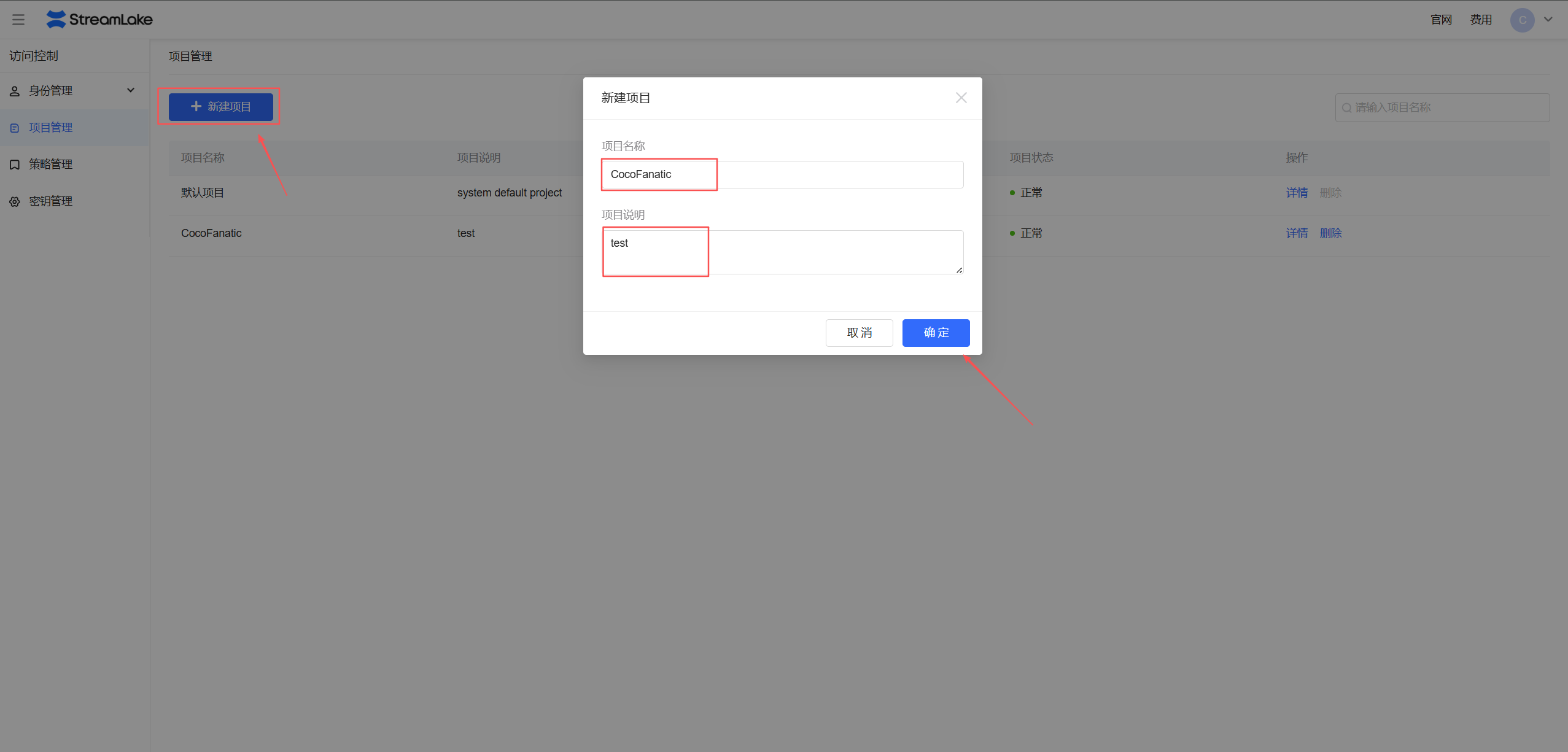 在项目管理页面,点左上角新建项目,在弹出的新建项目对话框中输入项目名称、项目说明,然后点确认。