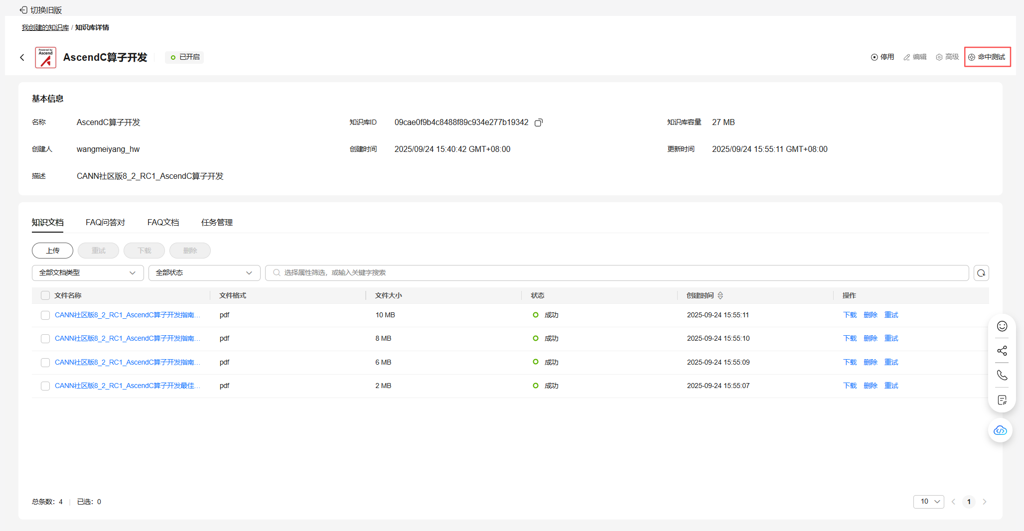 4. 使用Versatile Agent的知识库创建昇腾C算子知识库;