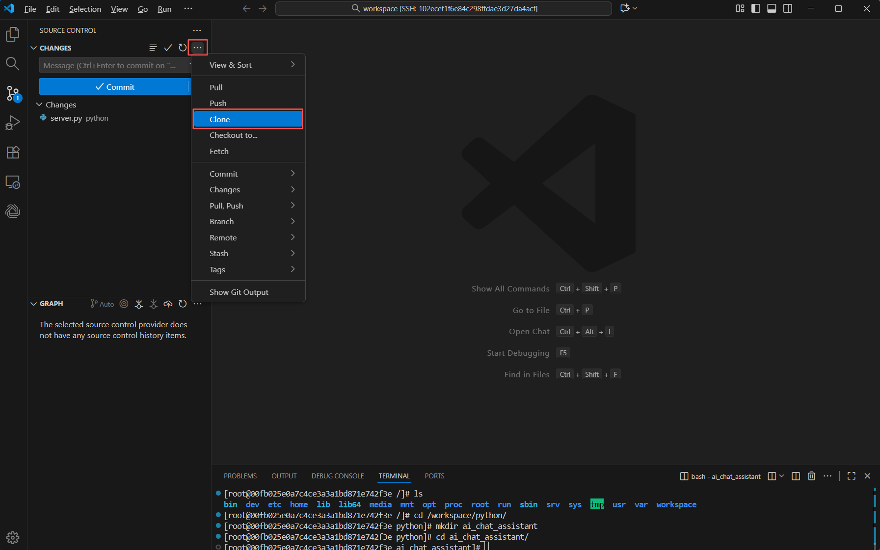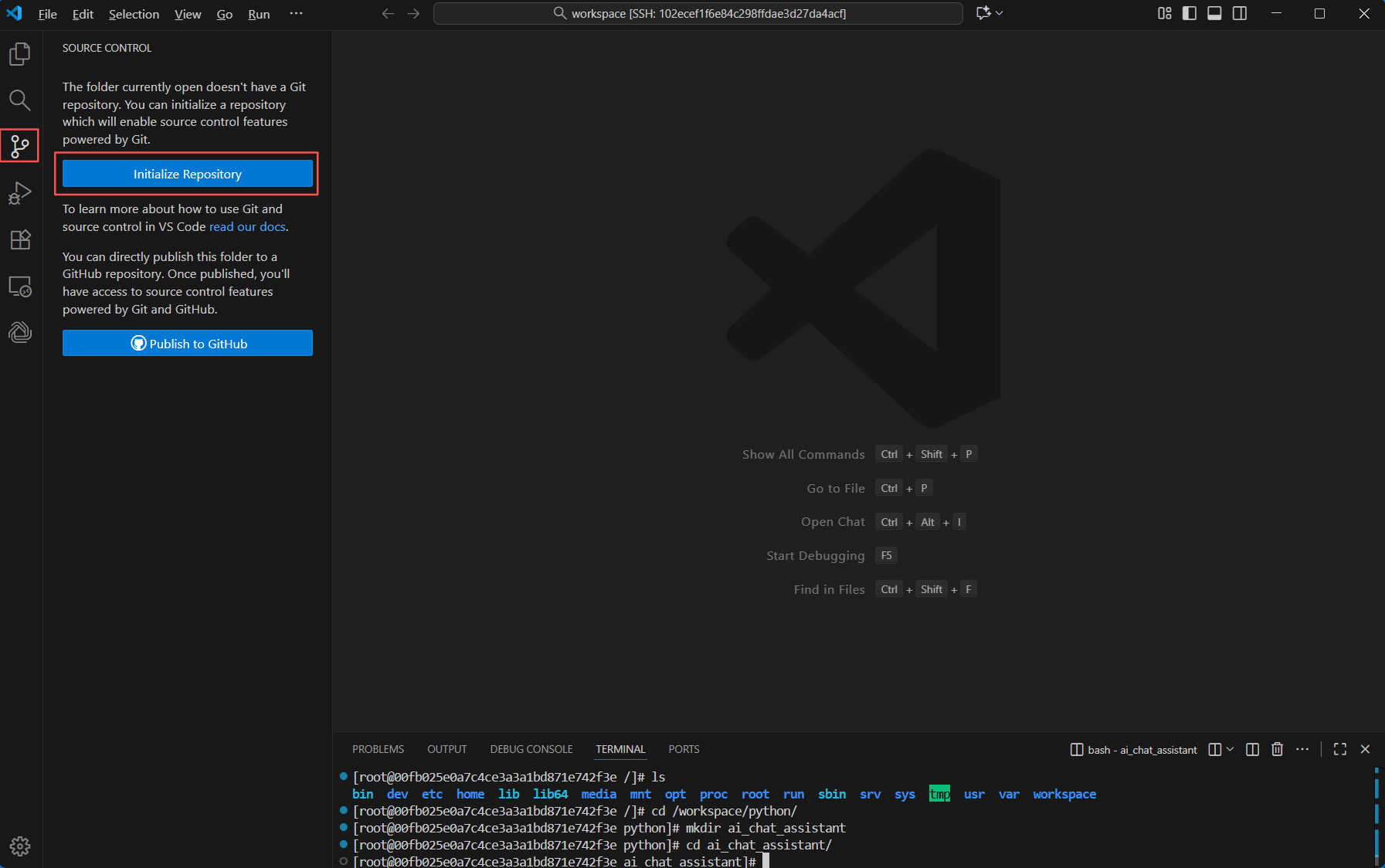 选择代码仓目录:/workspace/python/ai_chat_assistant/,点Select as Repository Destination。