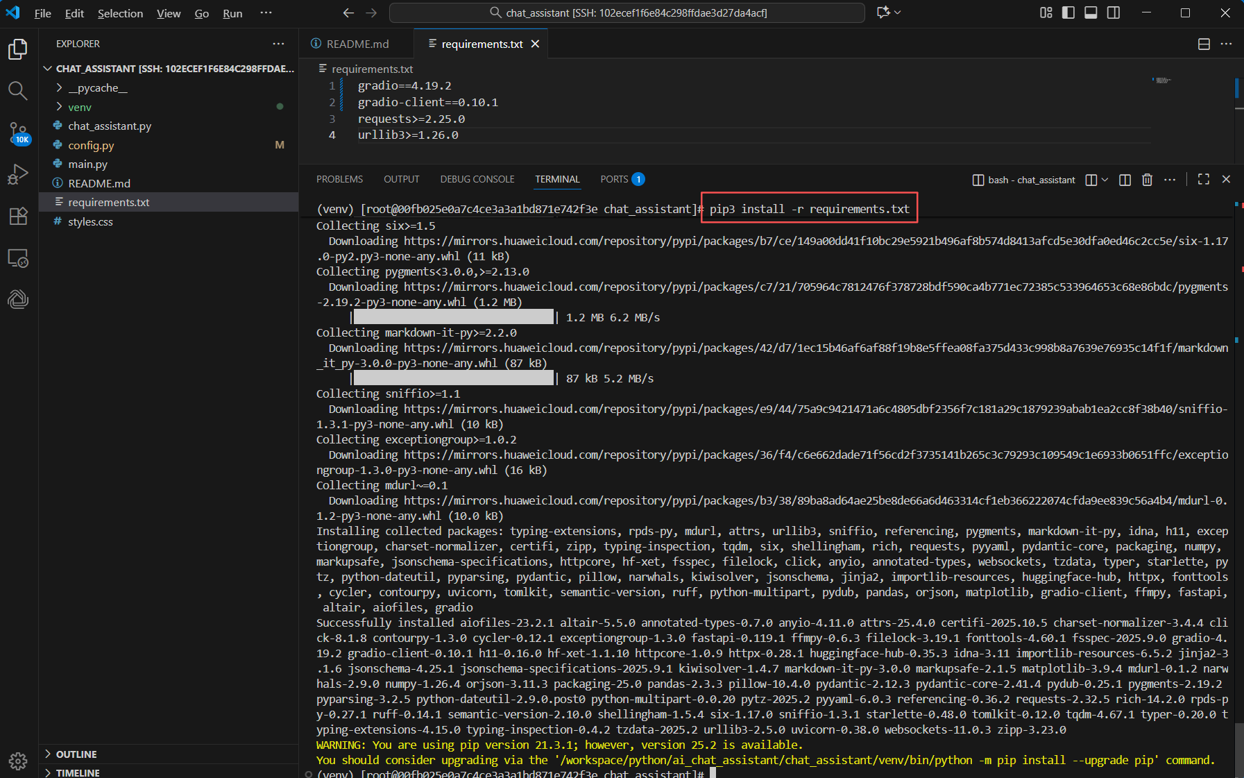 gradio: Web界面框架requests: HTTP请求库urllib3: URL处理库