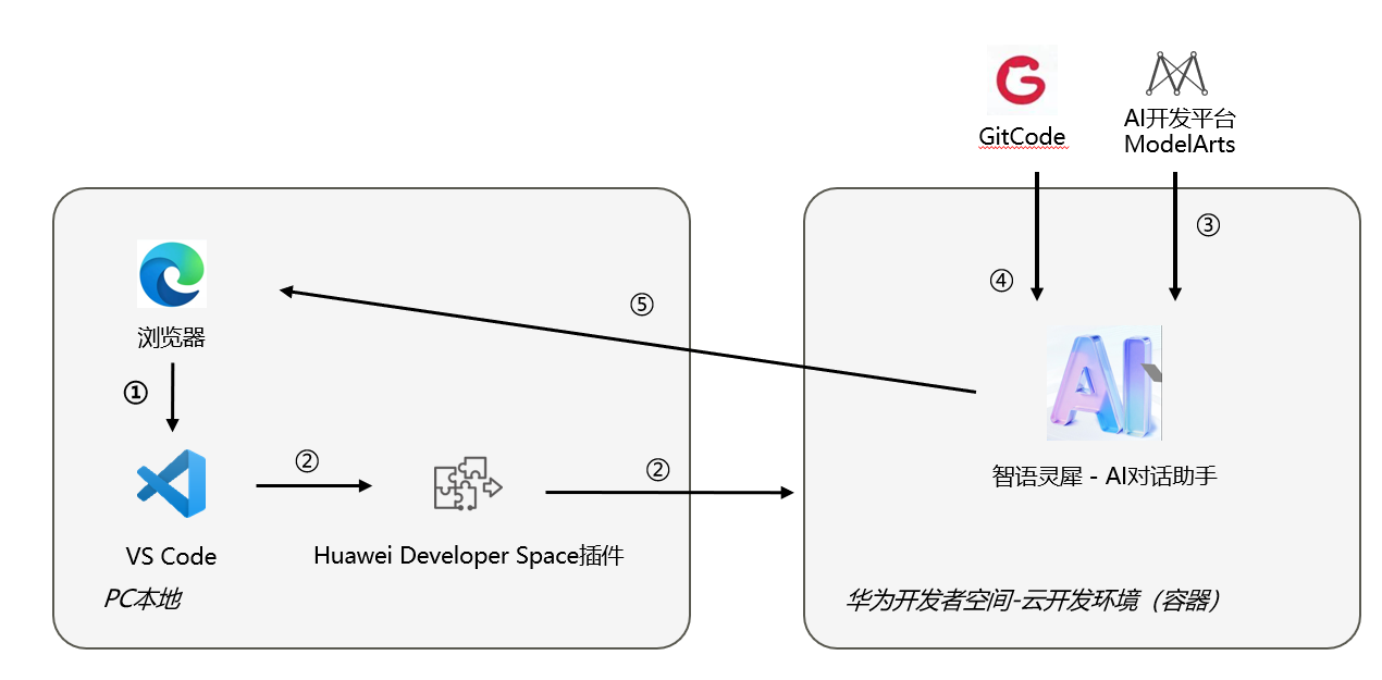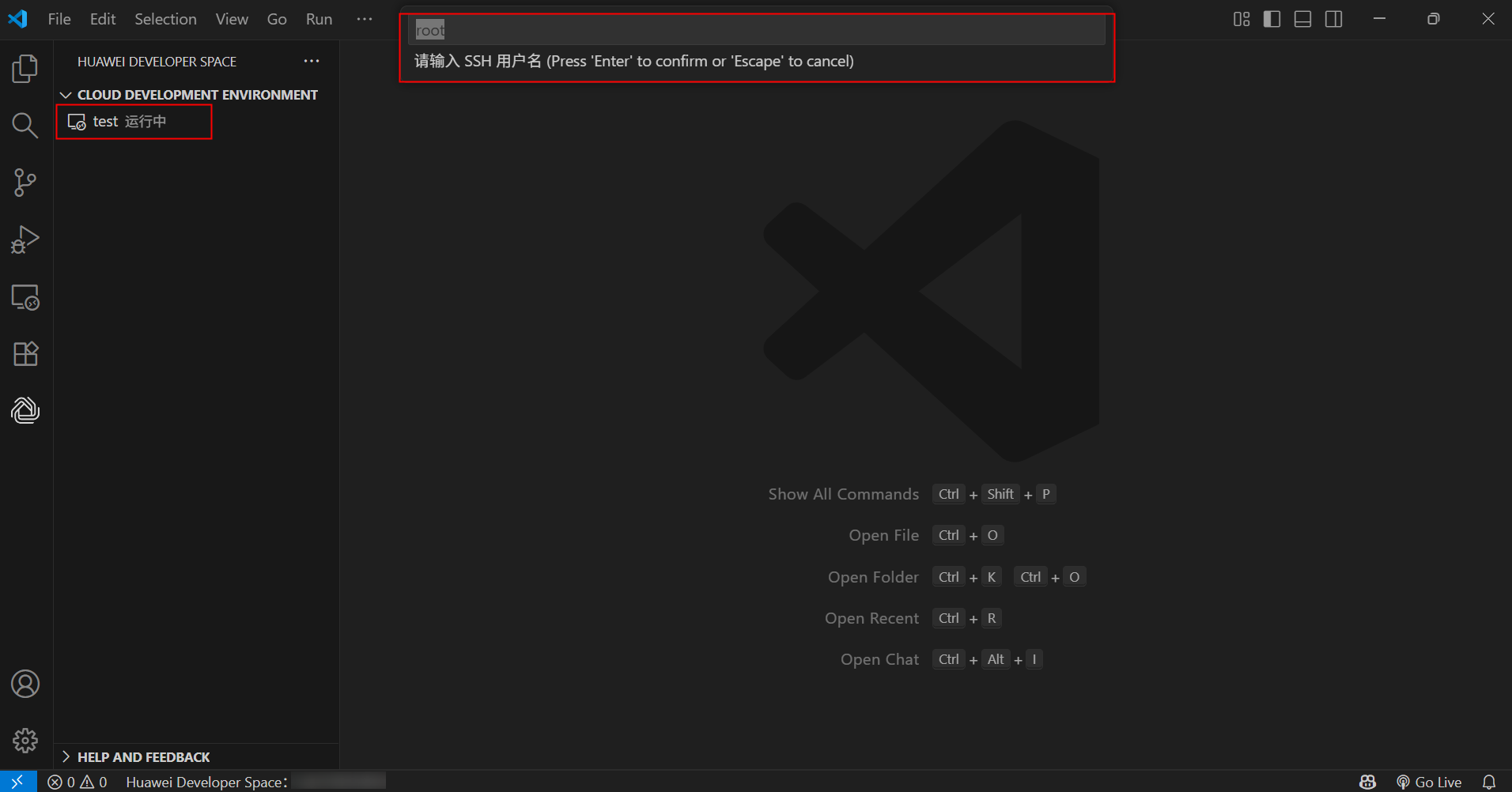 - PC本地通过VS Code安装Huawei Developer Space插件,远程连接操作云开发环境(容器)的;
